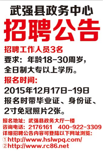 武強(qiáng)縣政務(wù)服務(wù)中心招聘簡章